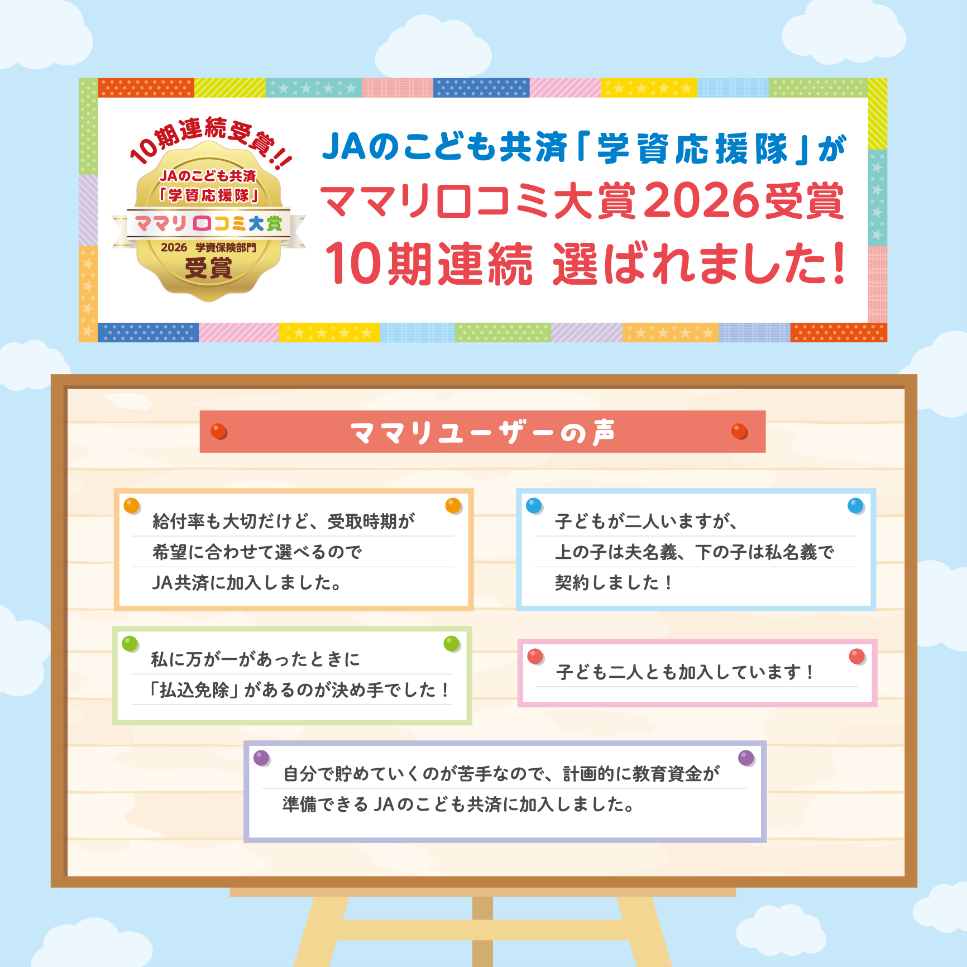 JAのこども共済学資応援隊のママリ口コミ大賞10期連続受賞!